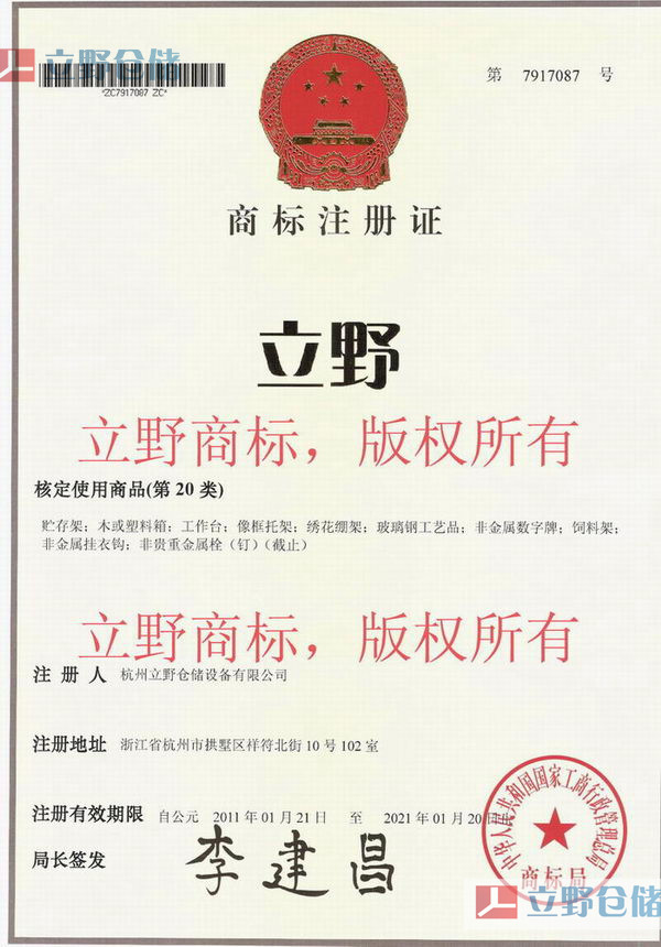 在此我們嚴(yán)正申明:立野®倉儲(chǔ)在浙江區(qū)域從未授權(quán)任何一家公司或個(gè)體商戶從事銷售立野倉儲(chǔ)的任何產(chǎn)品。任何跟我司名稱相近的企業(yè)或個(gè)體商戶跟我司沒有任何關(guān)系。請(qǐng)廣大客戶朋友購買產(chǎn)品時(shí)請(qǐng)認(rèn)準(zhǔn)立野®商標(biāo),以免上當(dāng)受騙。我司法務(wù)部也在積極收集證據(jù),維護(hù)立野®倉儲(chǔ)的專屬權(quán)利。